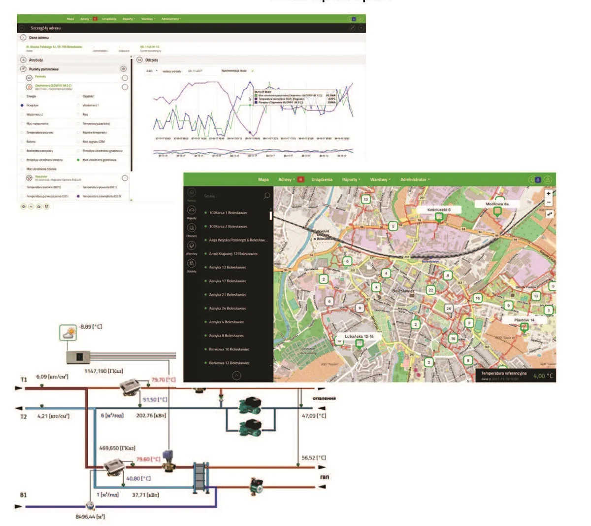 Система дозволяє дистанційно змінювати налаштування регулятора погодозалежного керування (виробництва компаній Danfoss, Samson), що забезпечує повне віддалене керування системою опалення та ГВП.