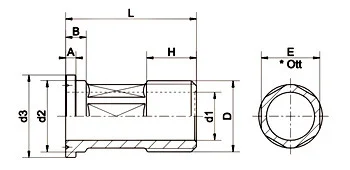 | Арт. | D | D1 | d2 | d3 | A | B | H | L | E | Note | ![]() |